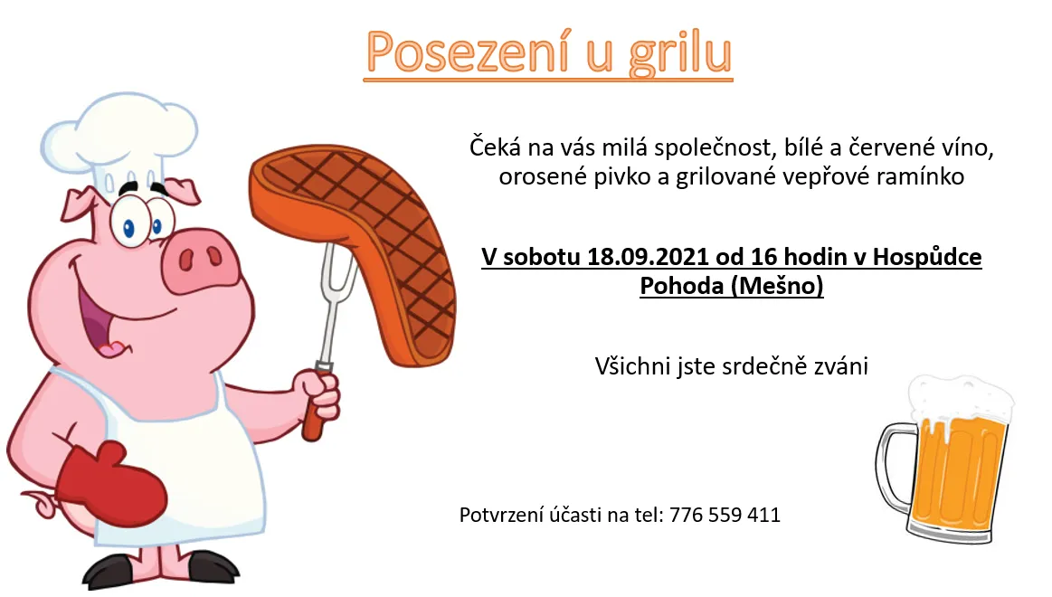 Zveme Vás na posezení u grilu v Mešenské hospůdce.